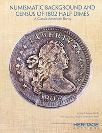 This 64-page book cites mintage and rarity estimates by prominent numismatists and documents the currently known 1802 half dime appearances. Each of the 32 documented examples includes an enlarged obverse/reverse photograph, the author's assigned grade, the provenance of each coin, auction prices realized or dealer fixed asking price, and a unique serial number for each specimen that will facilitate retrieval for research, cataloging, or price-information purposes. Reserve your copy of this remarkable volume for just $29.95 today.