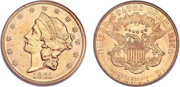 to collectors today. Thus, the 1861 Paquet Reverse double eagle is