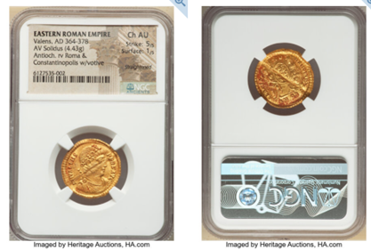 Coins are graded on the Sheldon Scale based on their circulation, wear, and possible defects or alterations. Since the grade or attribute is based on visual appearance, it can be subjective between what is considered minimal wear or moderate wear, for example. While the vast majority of ancient coins in the market are sold raw with a general grade associated, to eliminate biases Heritage sells primarily NGC-graded ancient coins.
